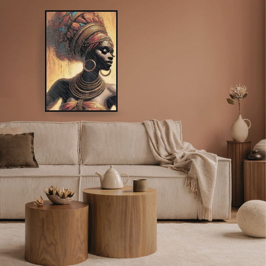 Regular price From LE 2,750.00 EGPRegular priceUnit price / perSale price From LE 2,750.00 EGPStylized portrait of a African woman adorned in traditional African costume. wall art paper and canvas