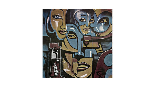 Nature of identity — Neo-cubist and abstract figurative art of overlapping human faces. Wall art canvas