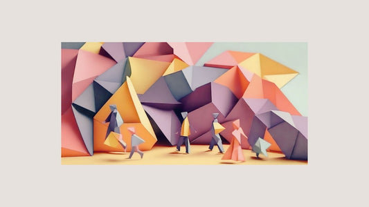 The Folded Journey — A polygonal art with geometric abstraction for people in a city. Wall art canvas