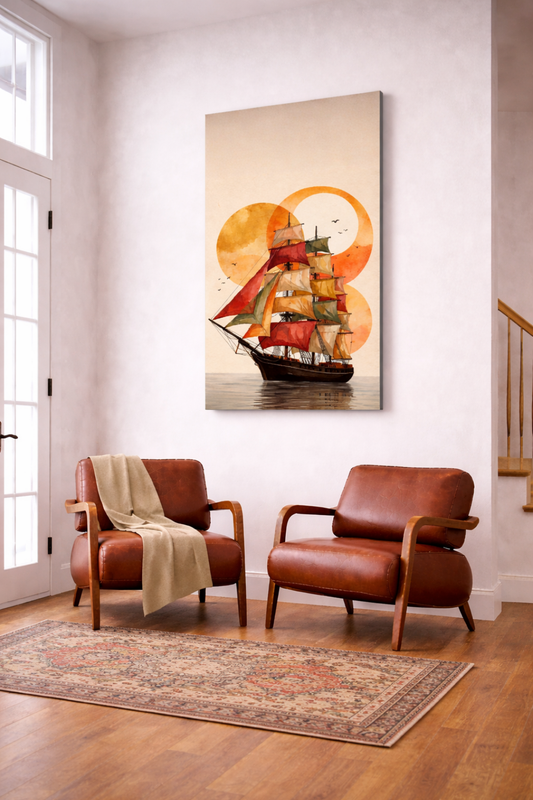 Expedition — A Contemporary Nautical geometric art for a historical sail ship. Wall art canvas