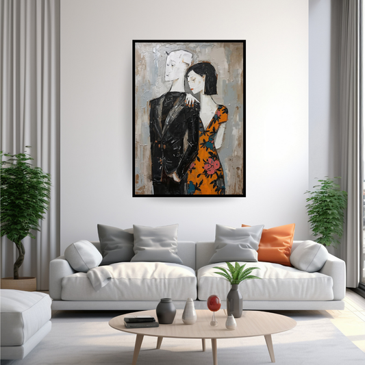 Together — Contemporary Abstract Couple expressing connection through texture, contrast. Wall art framed canvas